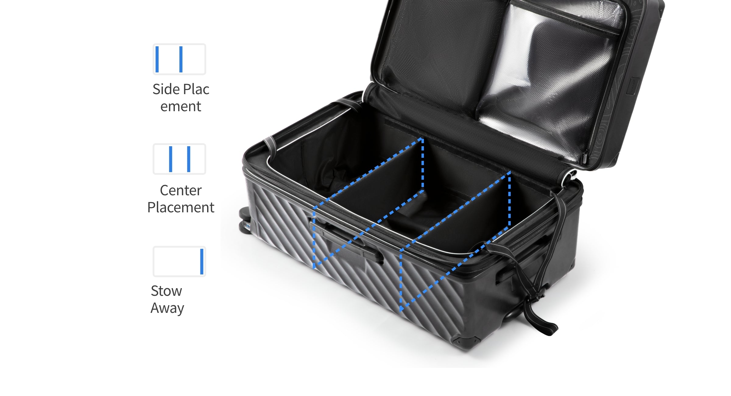 This structure allows travelers to access belongings quickly without fully opening both sides of the suitcase.