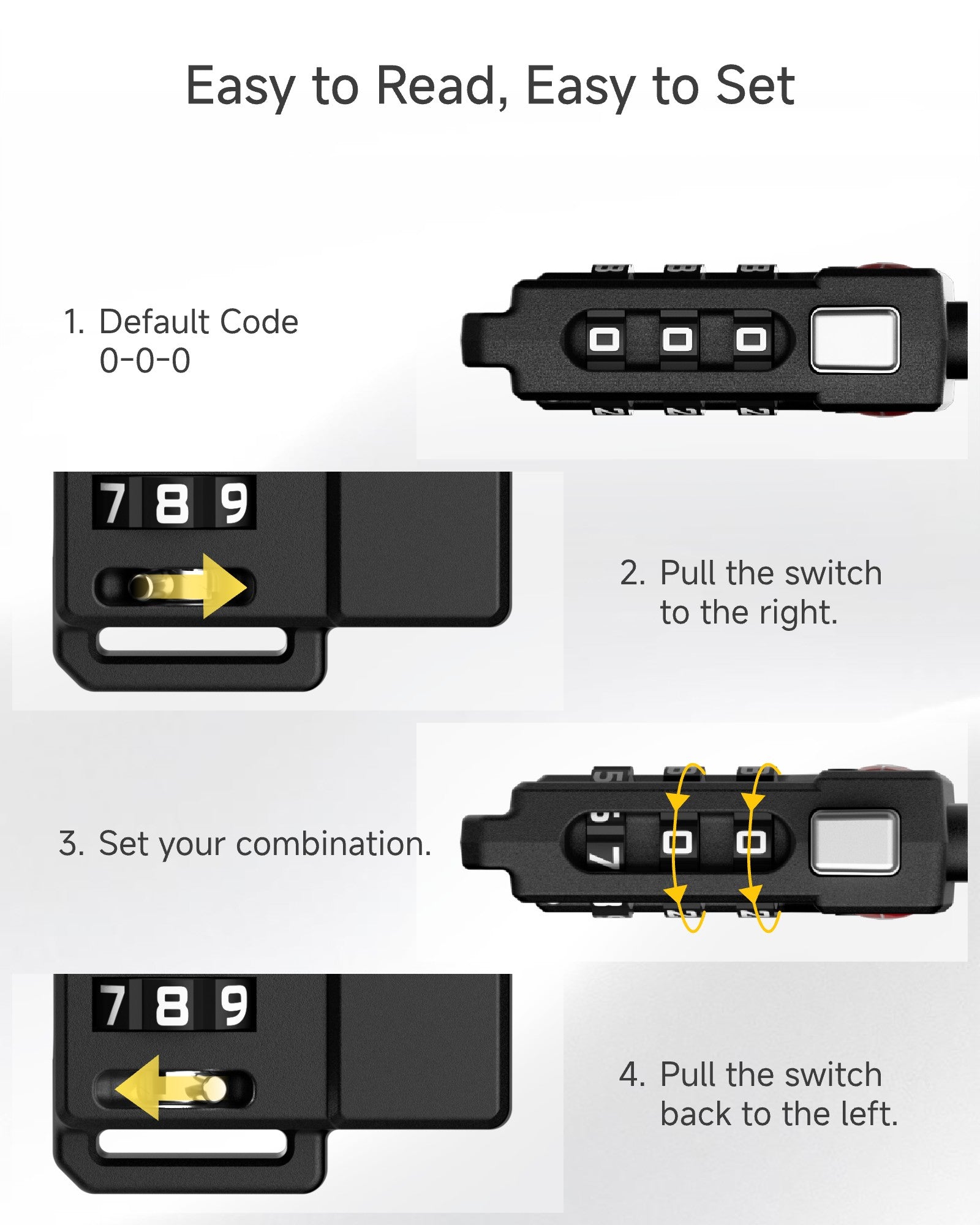 Reset 4-digit codes instantly with original password verification; TSA-approved for airport/gym use with tool-free convenience.