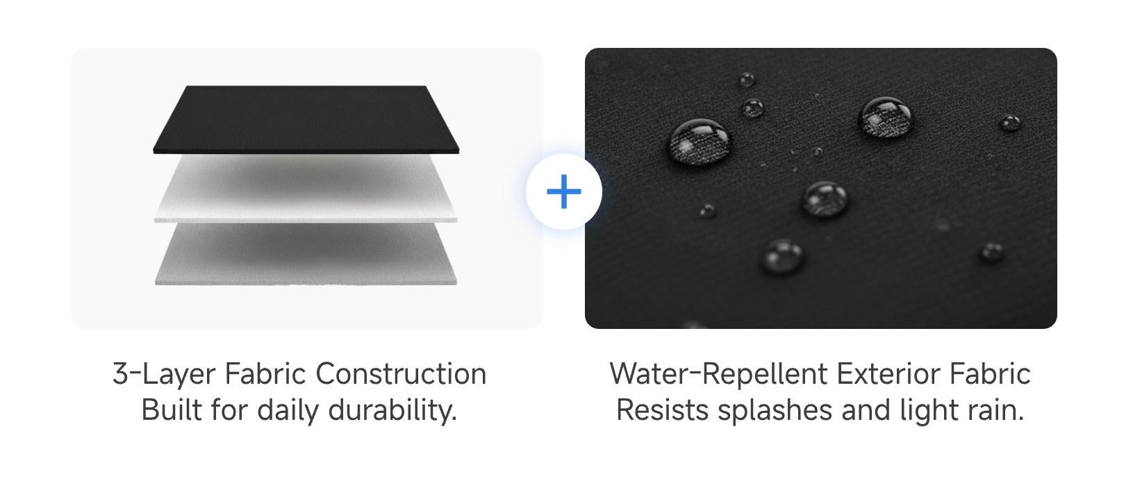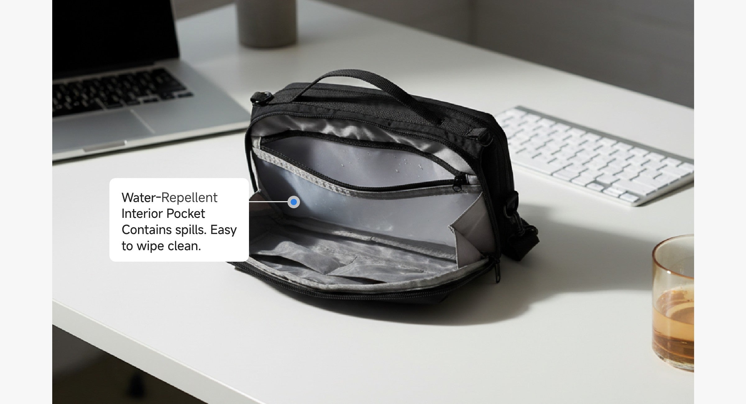 - Water-repellent exterior fabric resists splashes and light spills