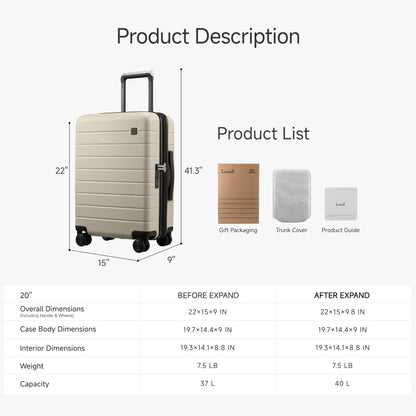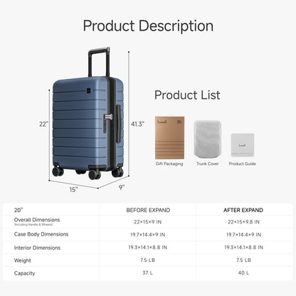 - The 20-inch size (22" x 15" x 9" including handle/wheels) meets most airline standards.