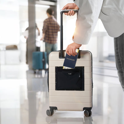 The patented DiHook on the telescopic handle lets you hang backpacks or totes hands-free. The rear Handy Pouch is a waterproof quick-access slot for passports, phones, or boarding passes—no more frantic unzipping during security checks!