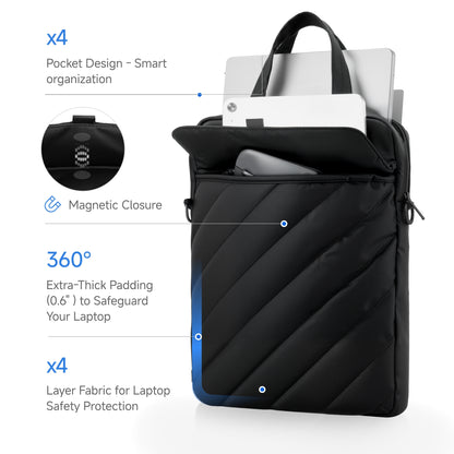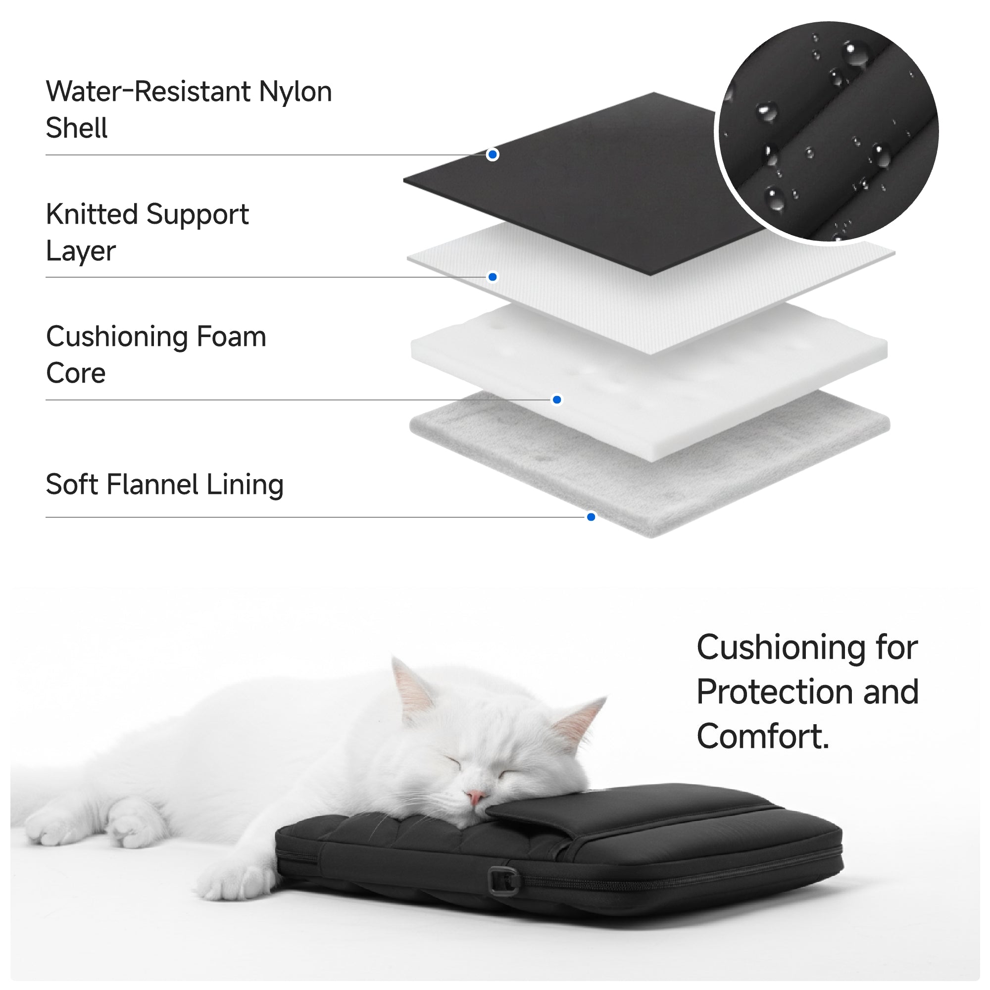 Soft to the touch, tough on protection — the multi-layer fabric shields your laptop from bumps, drops, and light rain, while the plush interior and extra-thick padding deliver worry-free carry.