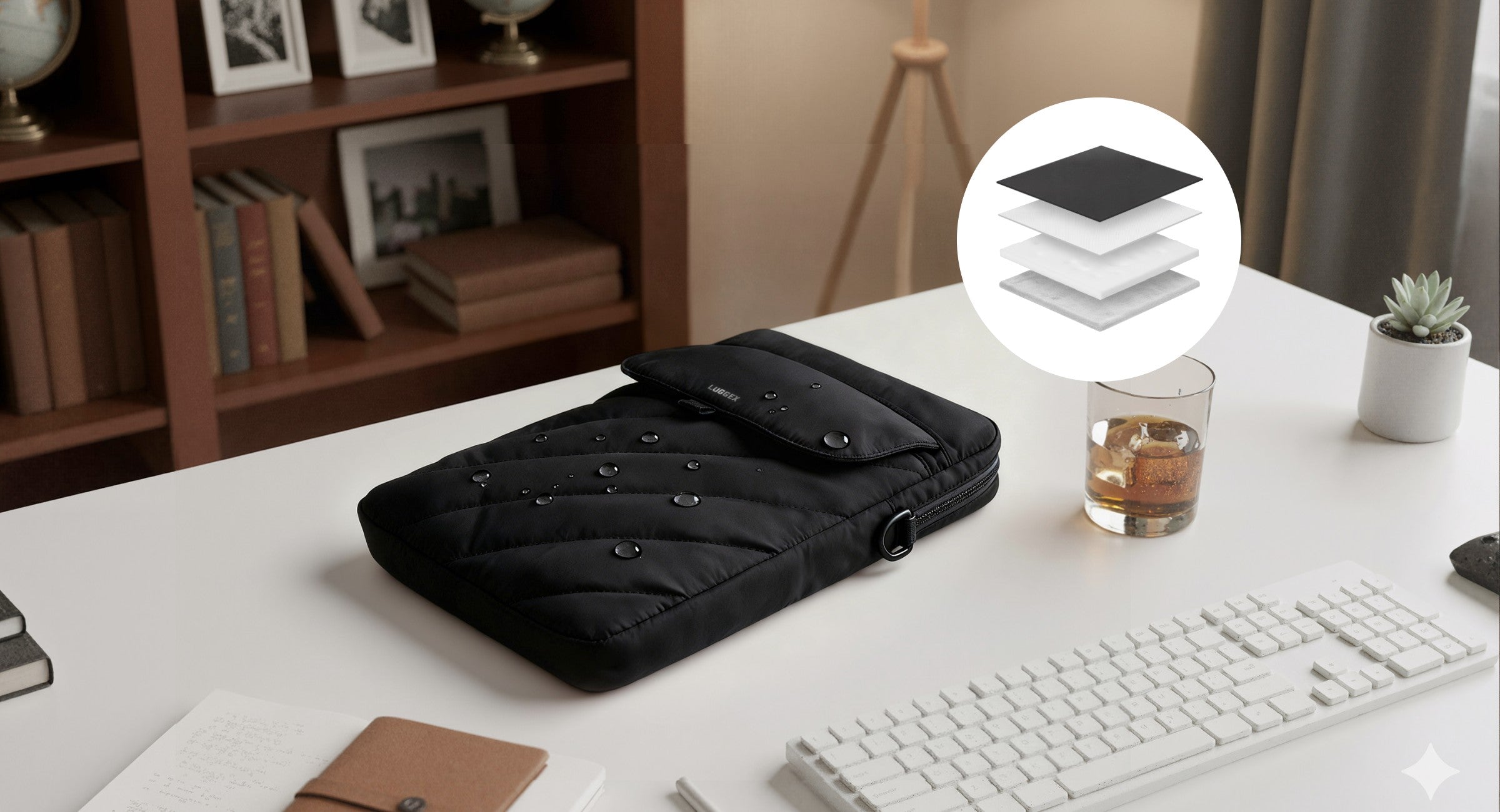 - 4-layer fabric system safeguards your laptop from light rain and everyday spills.