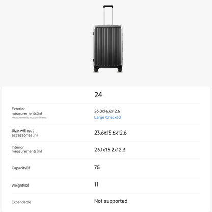 24-Inch Check-In Size – Provides expanded packing space for longer journeys while staying durable enough to protect everything inside.